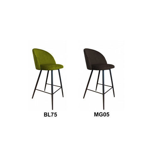 Das geschweißte Metallgestell des Stuhls verleiht dem Produkt ein modernes Aussehen und zusätzliche Stabilität. Die schwarze Farbe der Beine passt perfekt zu jedem der verfügbaren Farbtöne des Bezugs und ermöglicht es Ihnen, einen Barhocker auszuwählen, der perfekt in Ihr Interieur passt und zu seinem lebhaften Akzent wird.