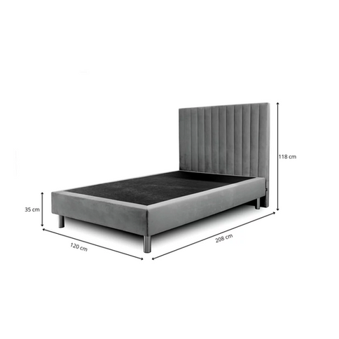 - Seiten- und Kopfteil des Bettes aus Samtstoff