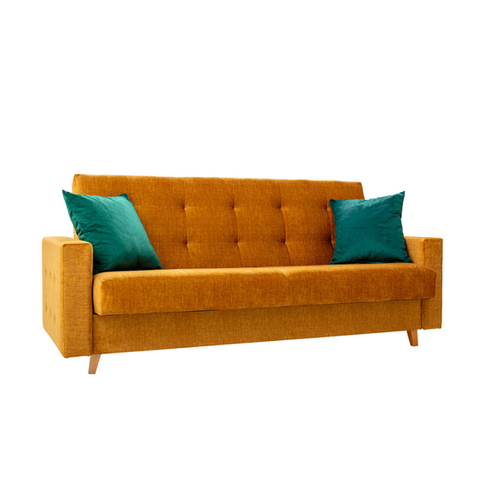 Das Schlafsofa OLA kombiniert zeitgemäßes Design mit funktionalem Komfort, ideal für jede Wohnsituation. Es bietet nicht nur einen bequemen Sitzplatz, sondern lässt sich auch schnell in eine großzügige Schlafgelegenheit verwandeln.