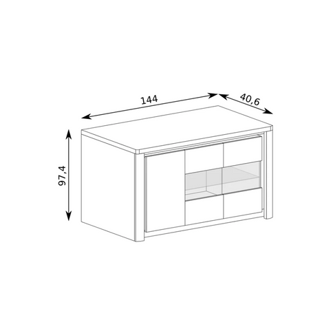 Комод характеризується унікальним дизайном, який поєднує білі фасади з теплою текстурою дерева, створюючи відчуття затишку та розкоші. Ліва частина комода оснащена тумбою з полицею, що забезпечує ідеальне місце для зберігання посуду або книг. Права частина, оснащена дверцятами з безпечним склом, дозволяє візуально демонструвати декоративні предмети або колекції, захищаючи їх від пилу.