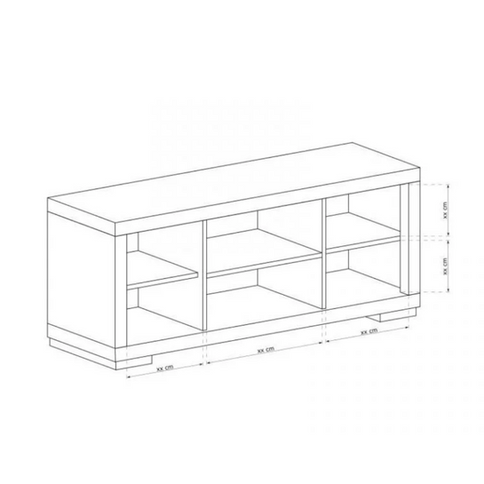 Тумба під телевізор з колекції Vegas. Він має видиму полицю, ідеальну для демонстрації прикрас, пам’ятних речей, а також декодера або радіо. З кожного боку є шафа з полицею посередині, що полегшує щоденну організацію. Металеві ручки підкреслюють довговічність меблів.